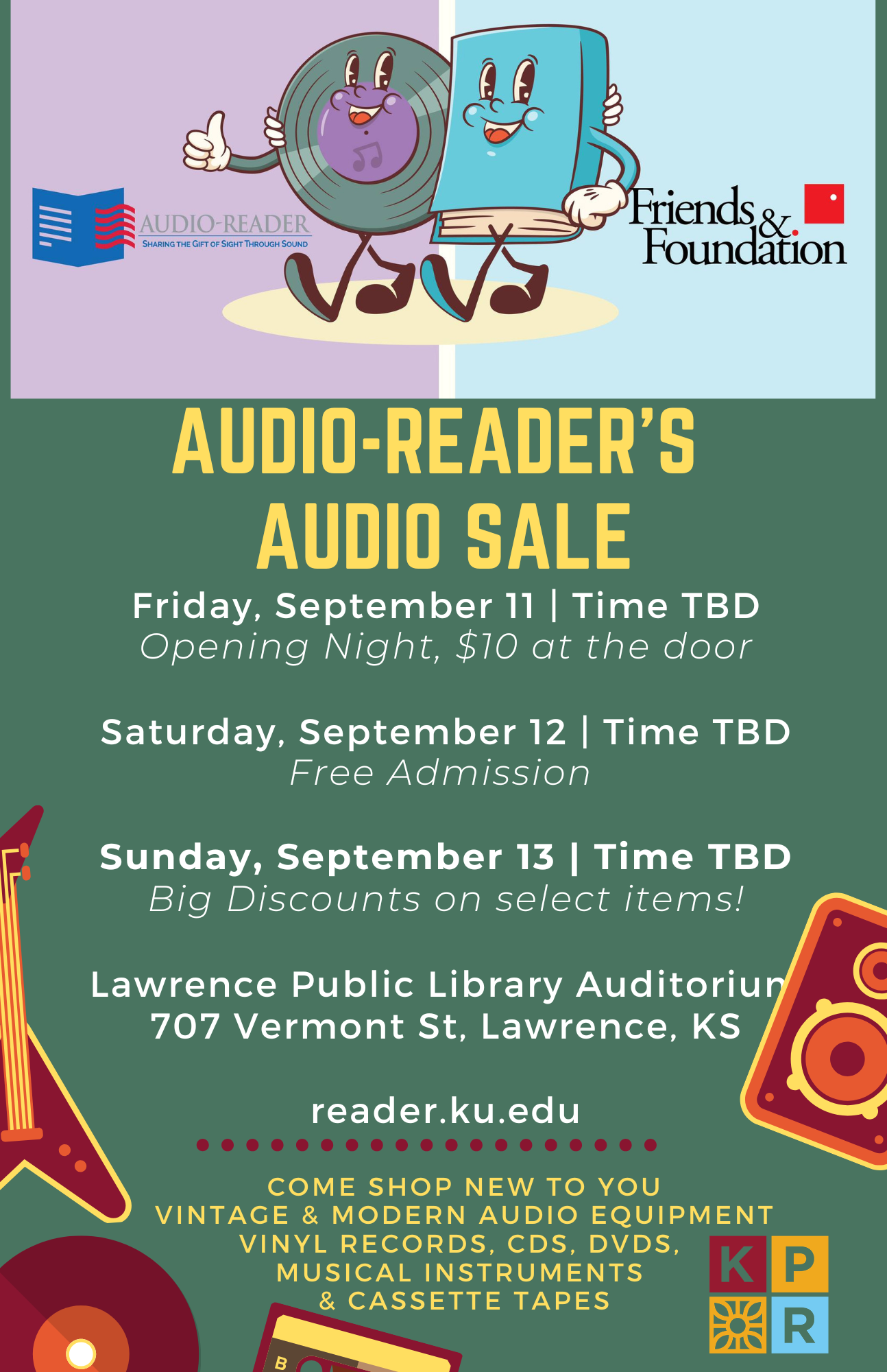 Special thank you to our audio equipment volunteers, Ed Hawkins, Douglas May, Gordon Fitch and Dave Dunford who all check, clean, repair and price all the audio equipment, as well as Wake Mitchell who checks and prices all of the vinyl records. These volunteers put in countless hours making a difference for Audio-Reader.